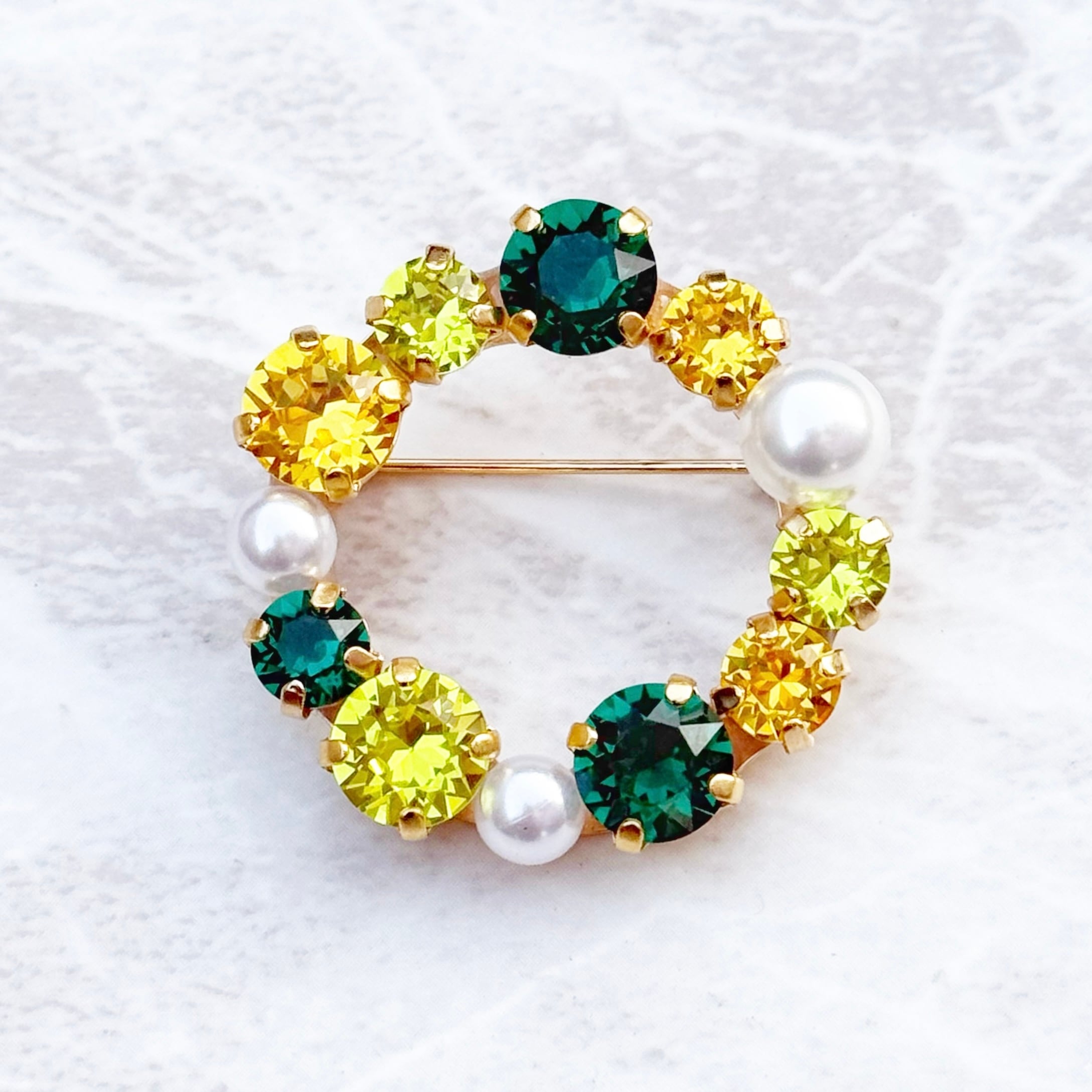 #SOLEILDESJARDINS #ソレイユドゥジャルダン #かわいい #キラキラ #アクセント #スワロフスキー #クリスタル #七五三 #成人式 #入学式 #卒業式 #お宮参り #春 #夏 #秋 #冬 #リースブローチ #リース #スーツ #ジャケット #結婚式 #ブローチ #パール #入学式 #卒業式 #帯留め #ストール #ストール留め #マフラー #マフラー留め #ポニーフック #シンプル #ク 春色 #グリーン #イエロー #エメラルド #若葉