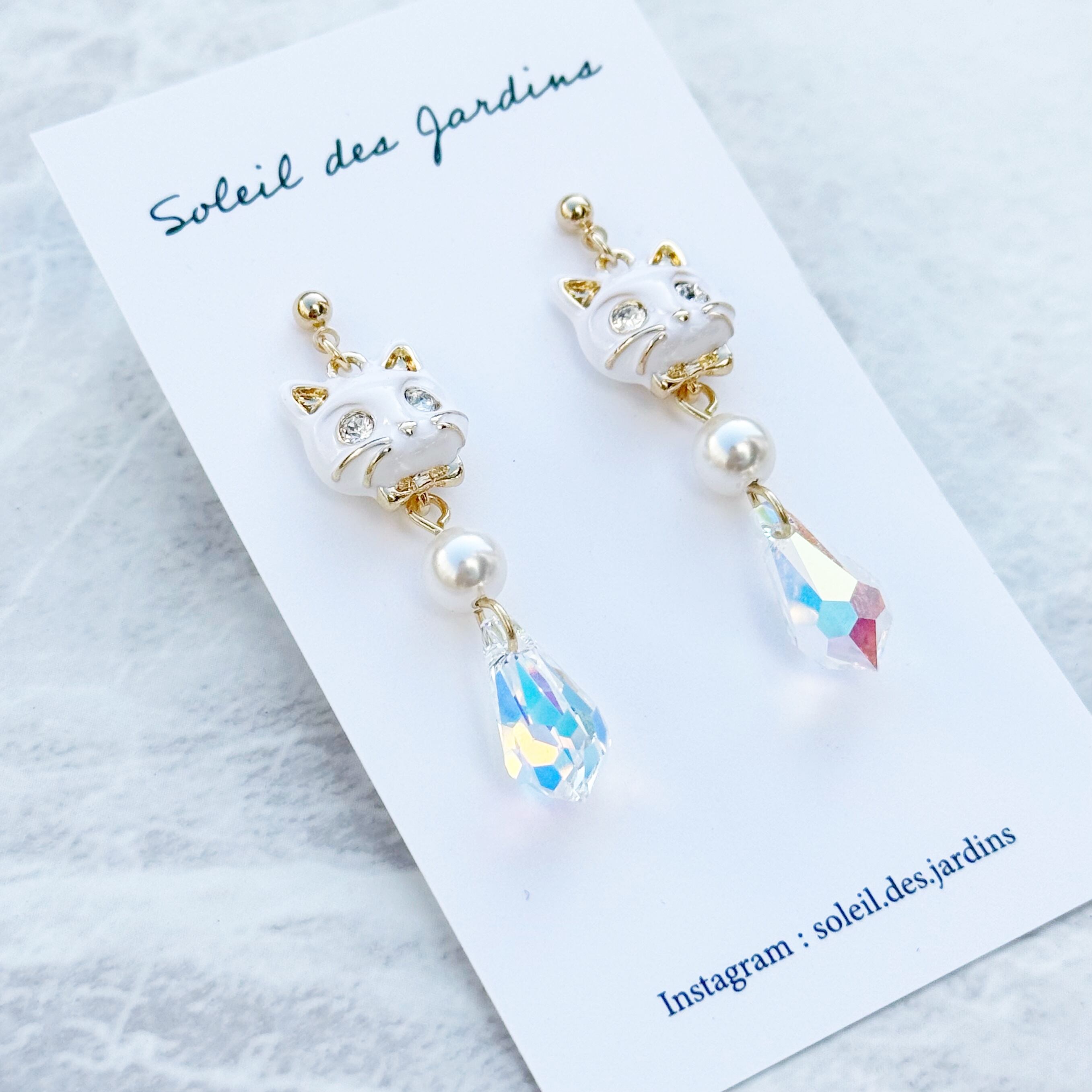 #SOLEILDESJARDINS #ソレイユドゥジャルダン #パール #春 #夏 #秋 #冬 #和装 #入学式 #卒業式 #着物 #結婚式 #パーティー #スイーツ #スイーツアクセサリー #ピアス #猫モチーフ #高見え #おしゃれ #スワロフスキー #猫 #イヤリング #猫好き #白猫