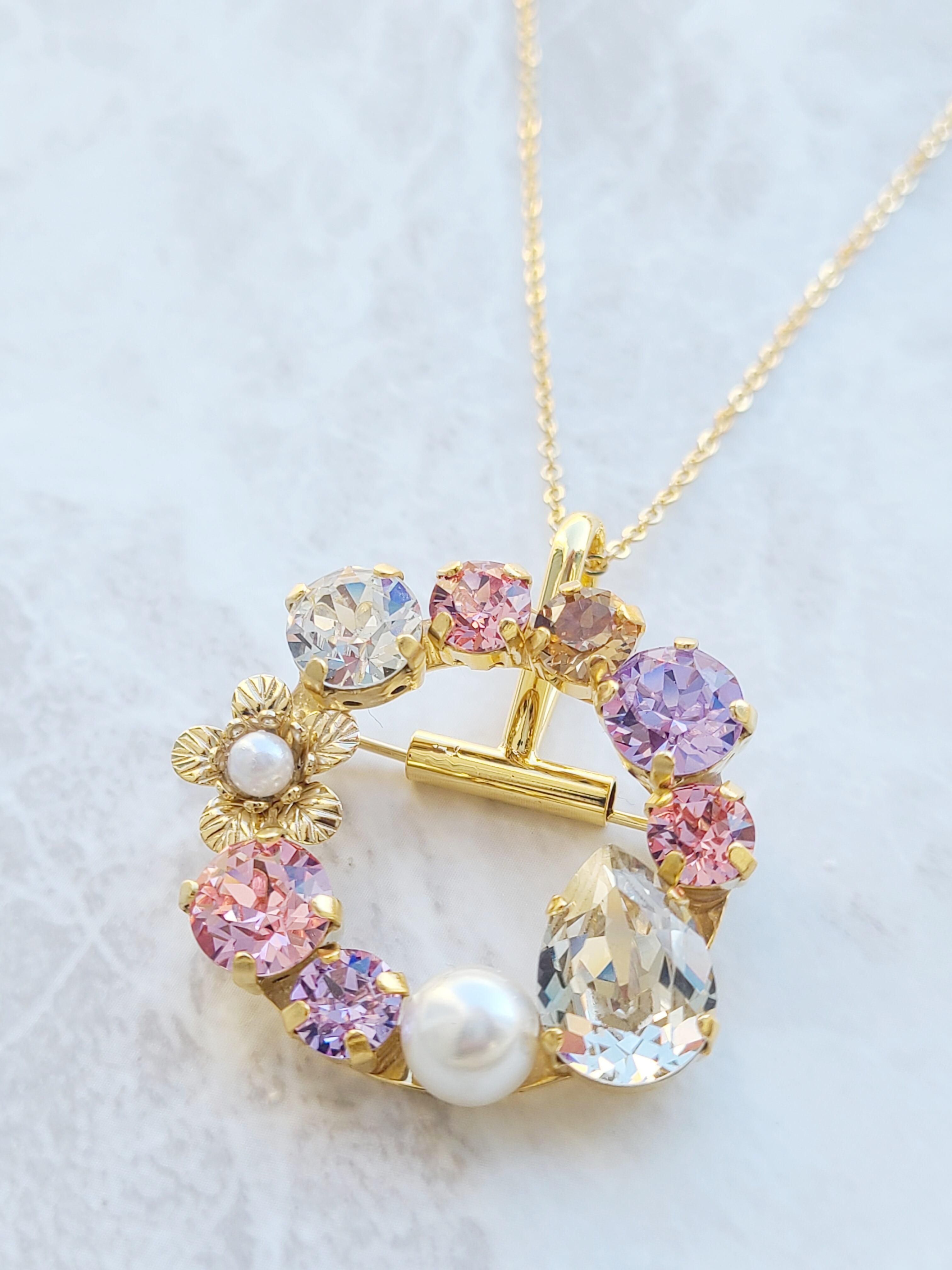 再販×1【選べる2way】ネックレスにもなる スワロフスキー ビジュー ブローチ ~春カラー~