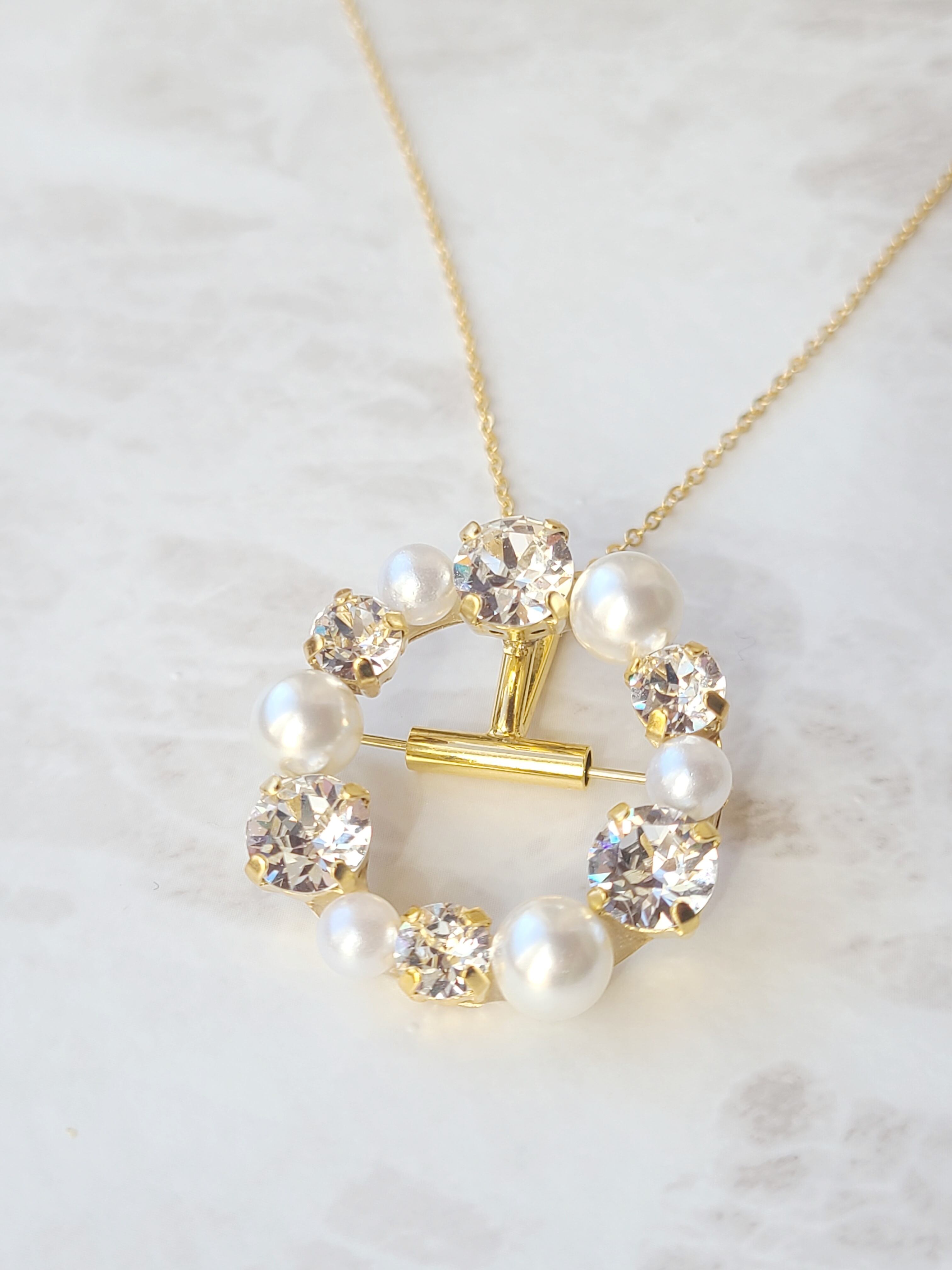 再販×1【選べる2way】ネックレスにもなるスワロフスキービジューブローチ~シンプルクリスタルパール~