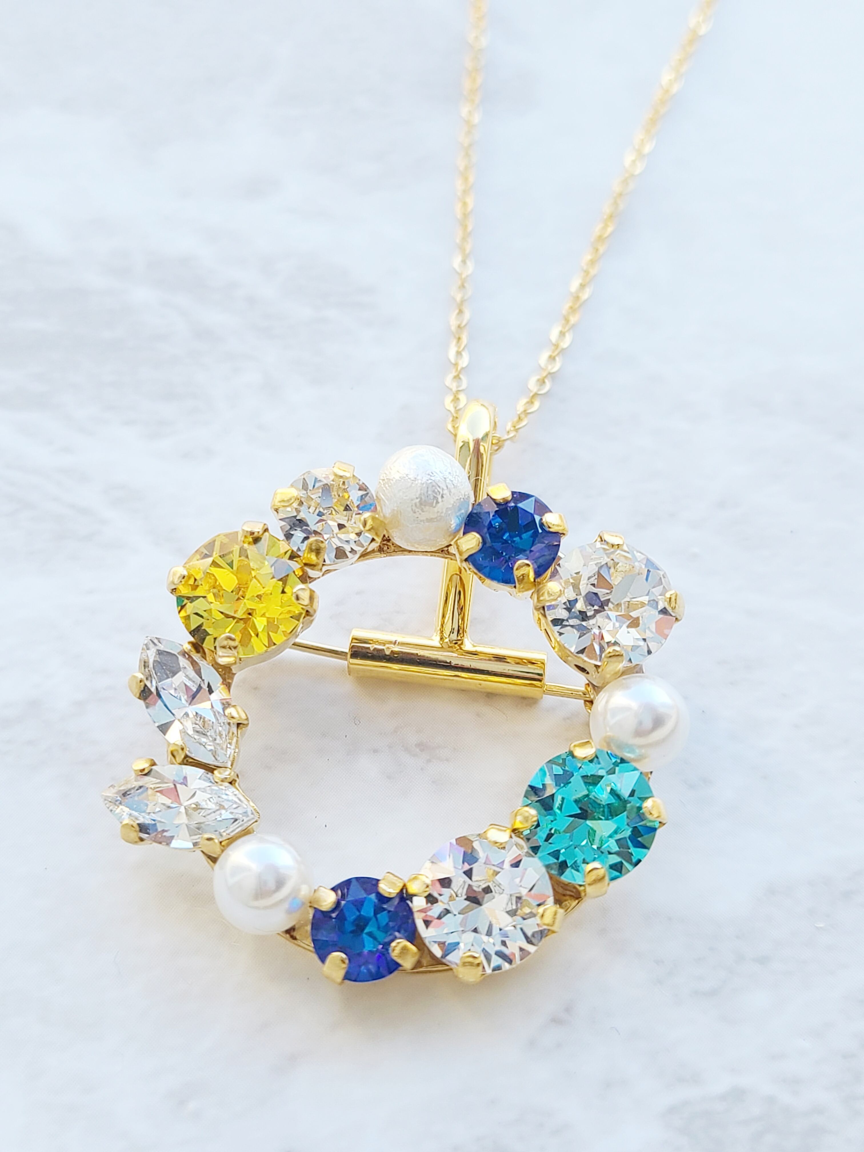 【選べる2way】ネックレスにもなる スワロフスキー ビジュー ブローチ~ブルーイエロー~