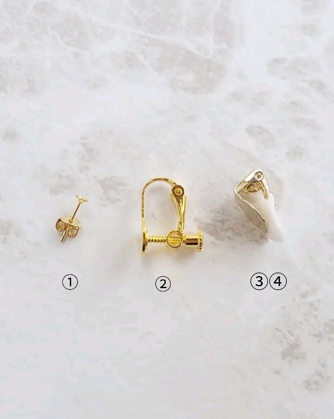 ③イヤリングクリップ式と④マスククリップは金具は同じですが、アクセサリーの付く向きが違うのでお気をつけください(画像参照お願いします)