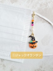 ハロウィンチャームとスワロフスキーを使って、ハロウィンにぴったりなマスクチャームを作成しました★