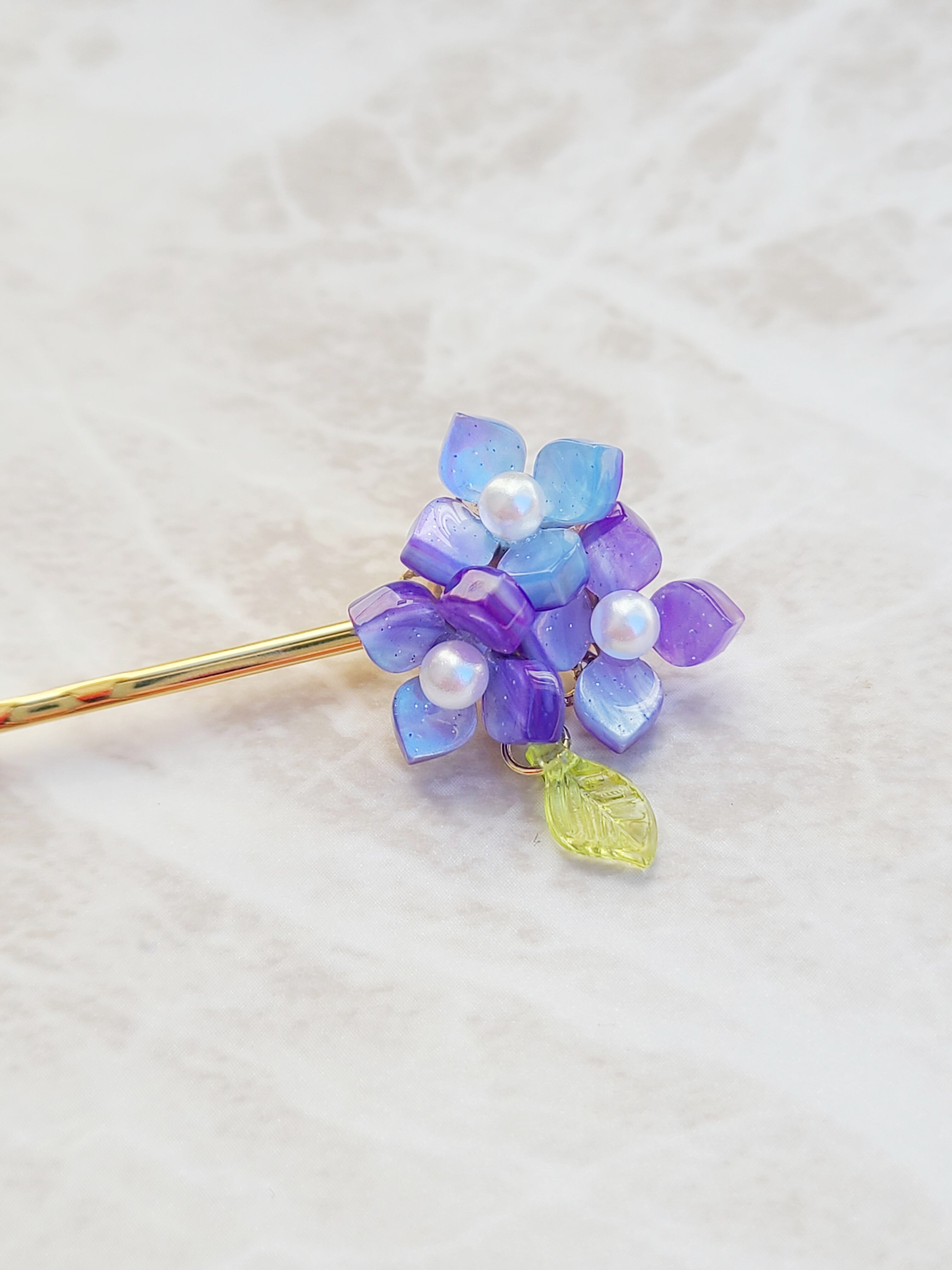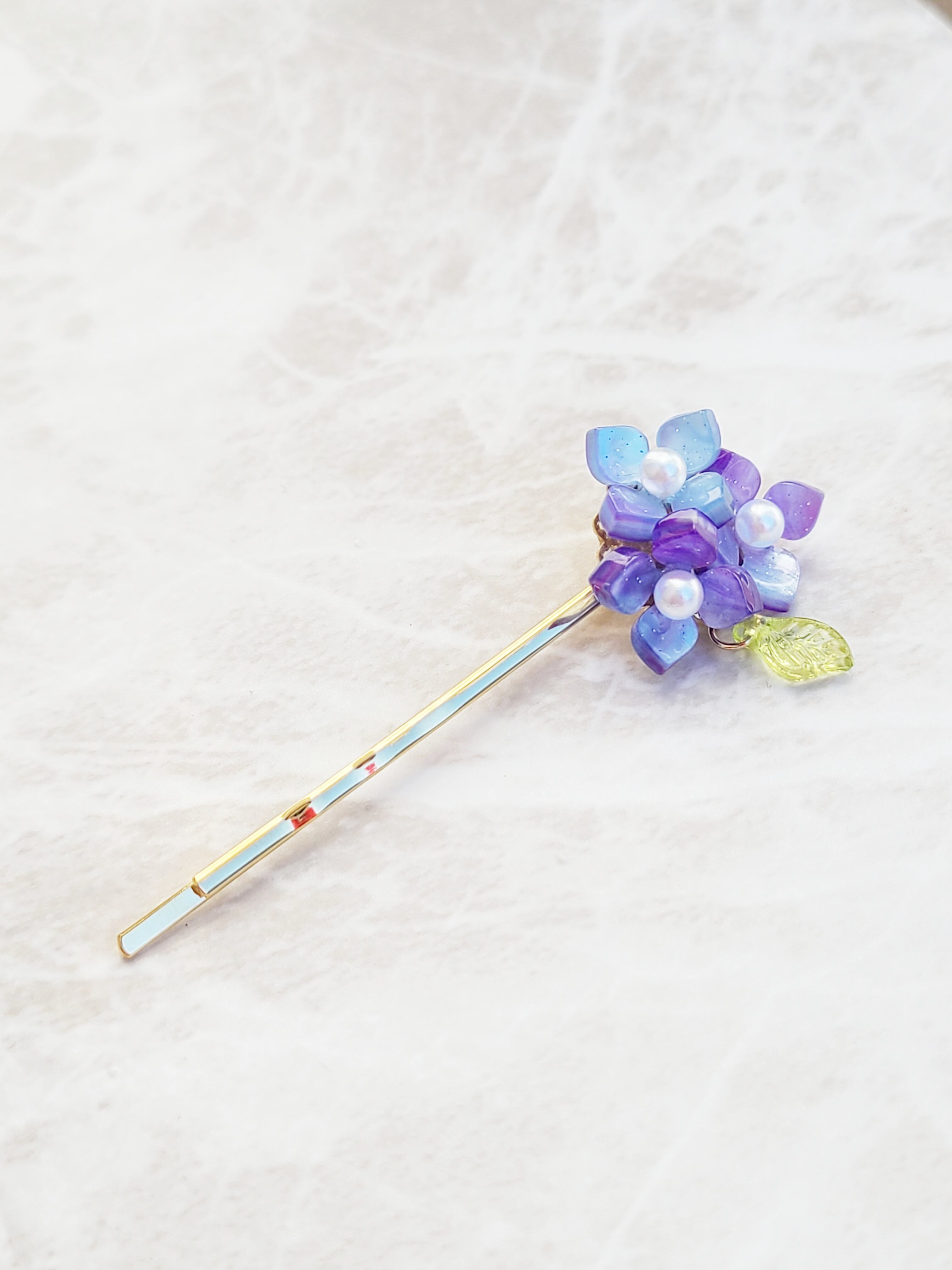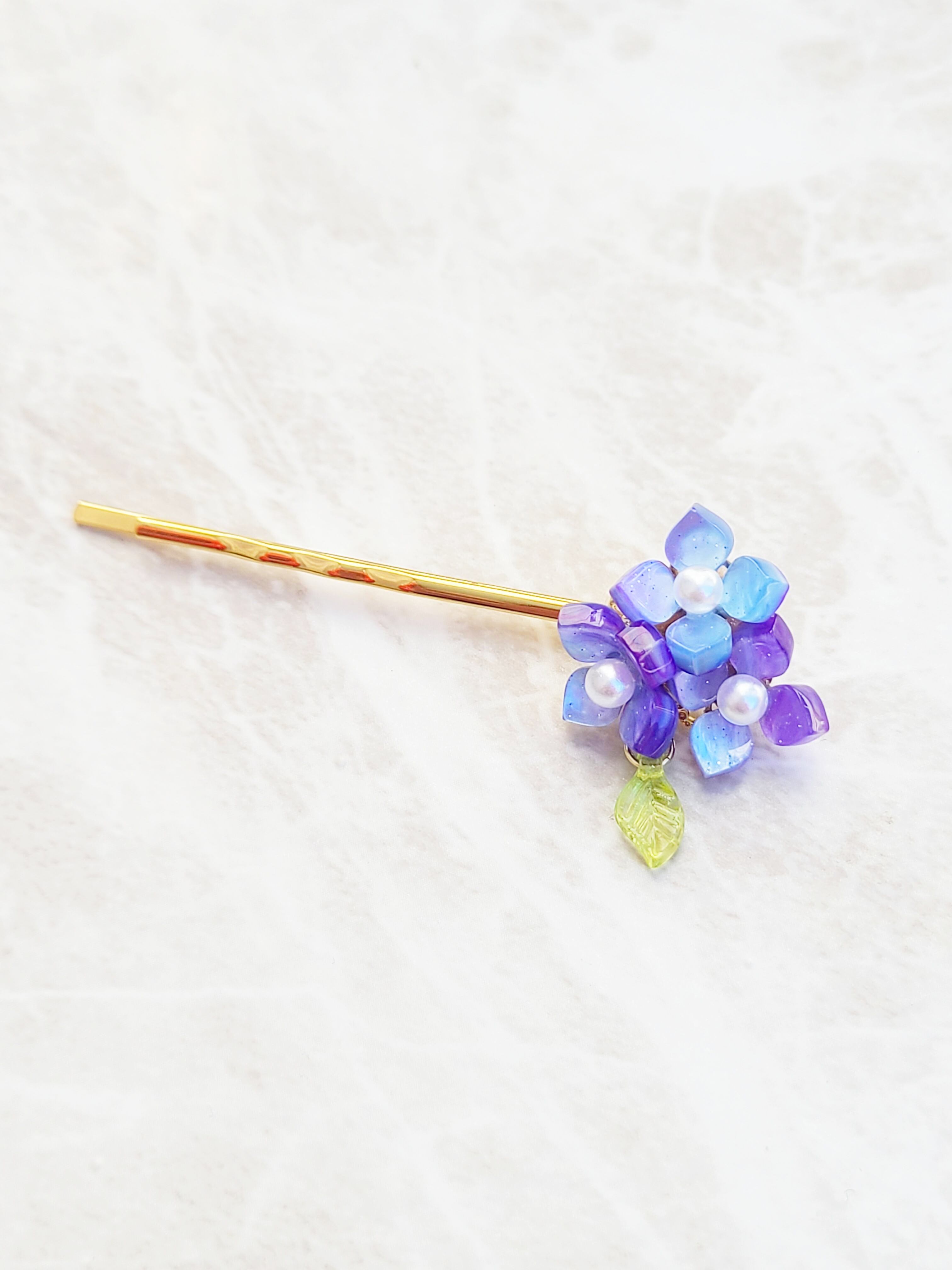 葉っぱがゆらゆら あじさい 紫陽花 ヘアピン パール