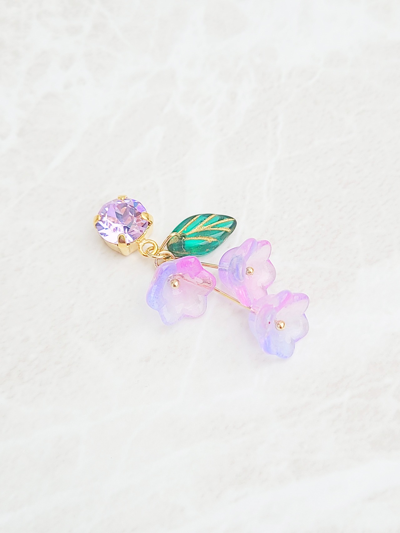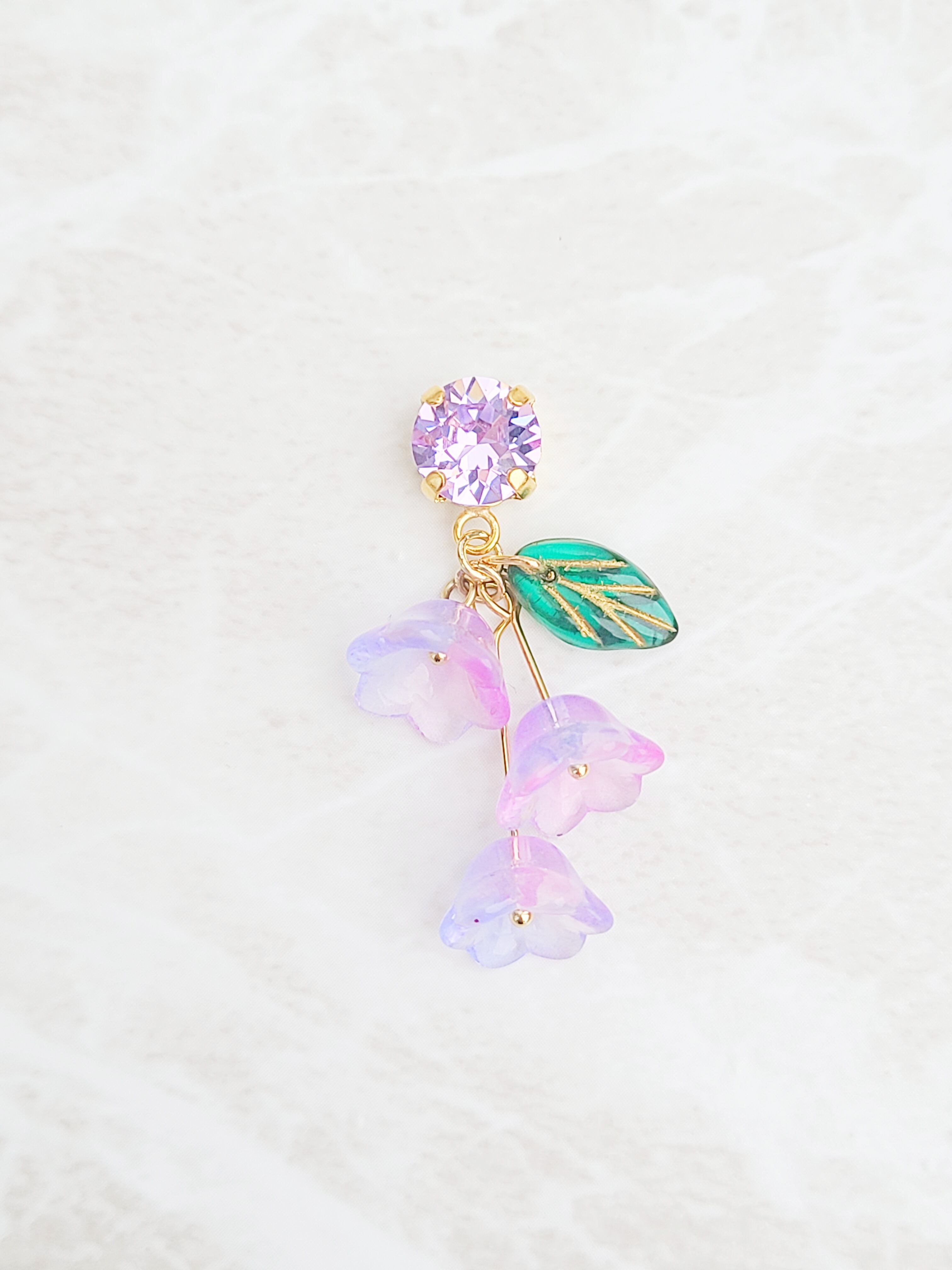 繋ぎには、すずらんのカラーと同じバイオレットの貴和クリスタル(旧 スワロフフキー)を使用しているため、揺れたときの輝きがいっそう綺麗になります★