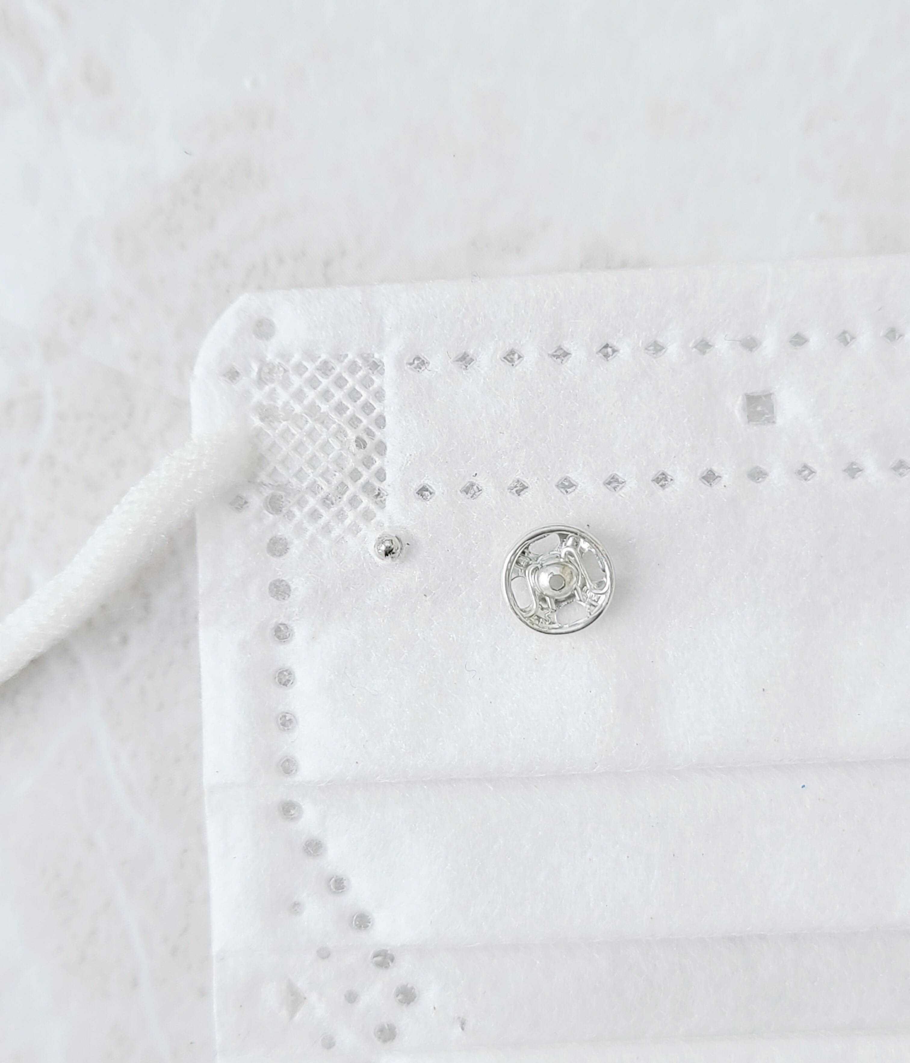 ※布などの厚みのあるマスクの場合は、穴をあけるか金具を縫い付ける必要がございます。