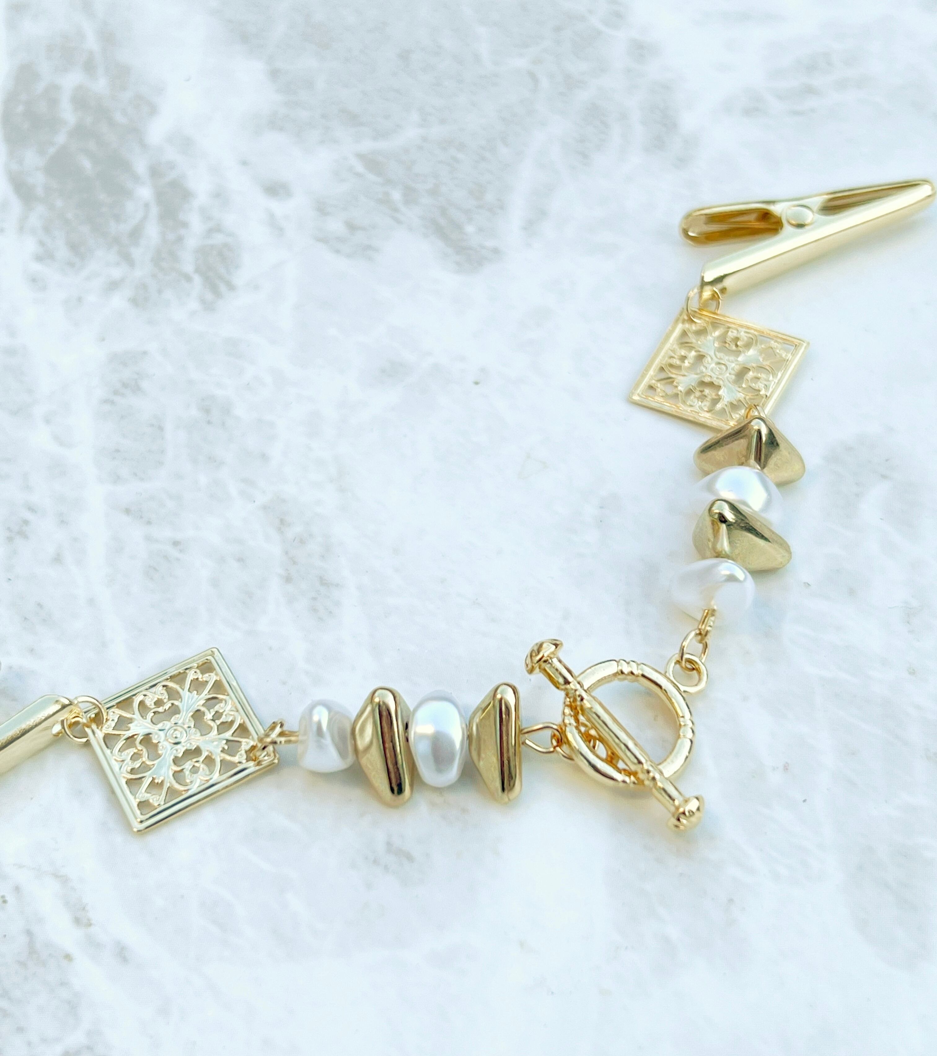 マンテルとさざれパールを使ってストール留めを作成しました♪