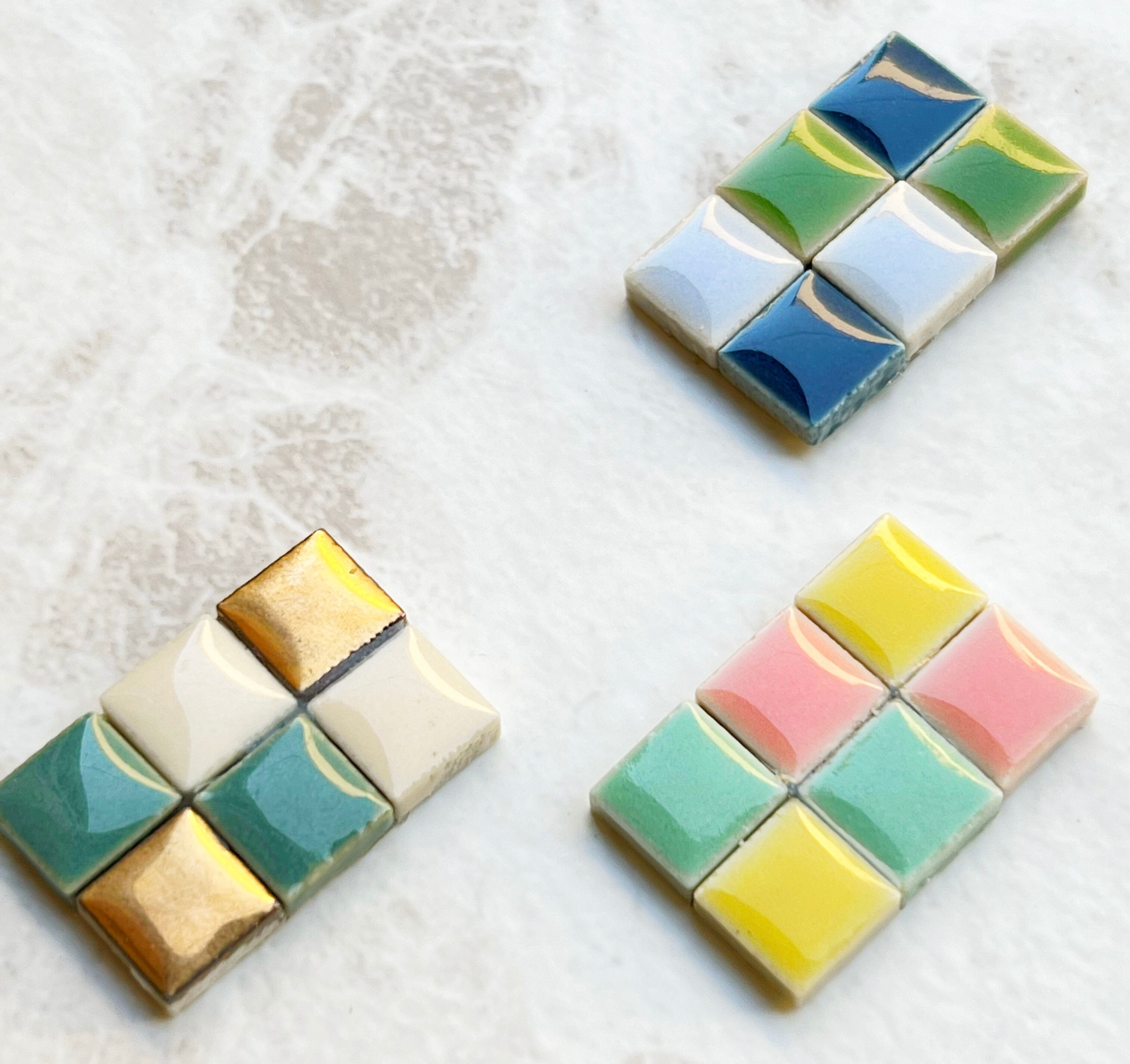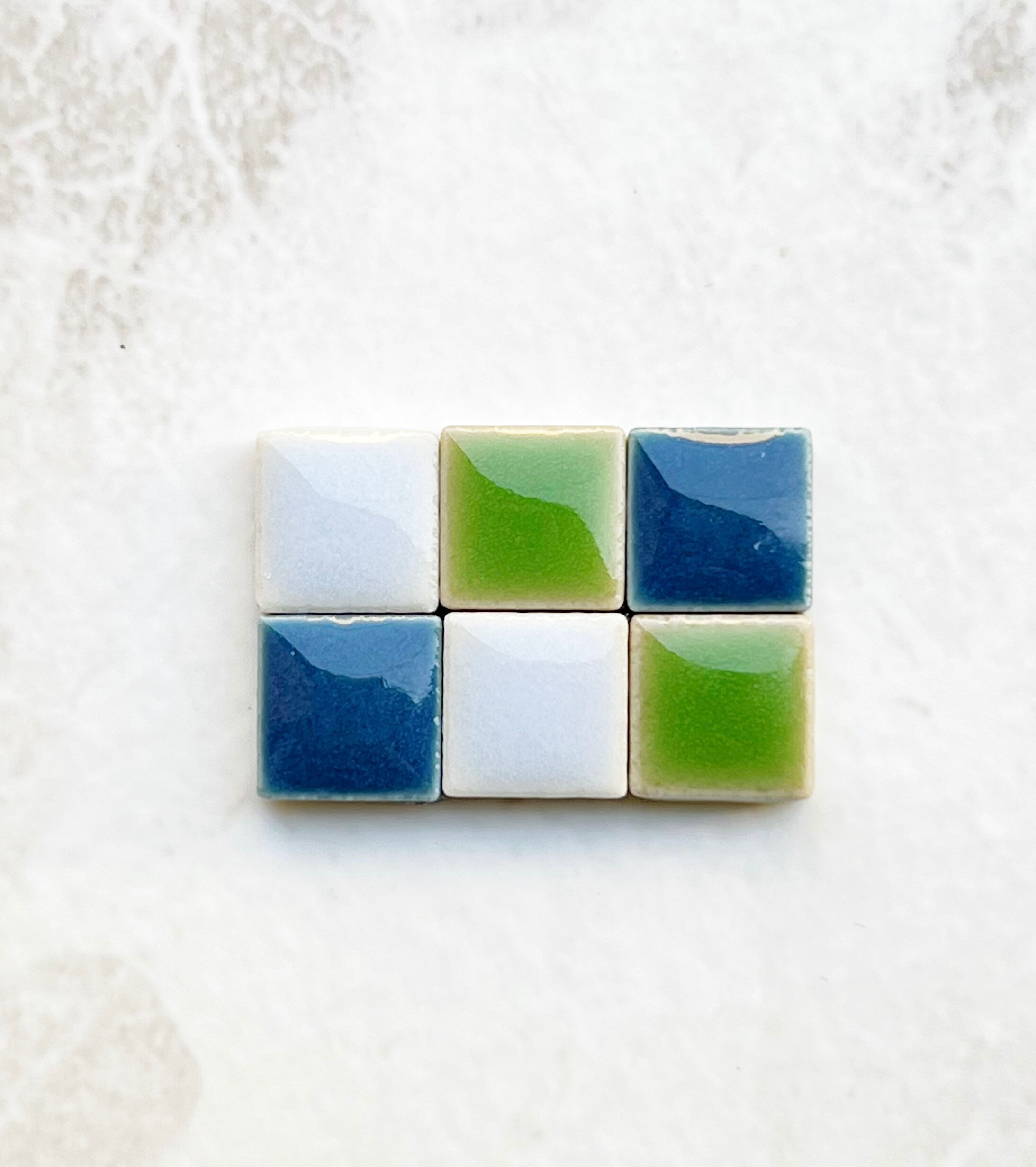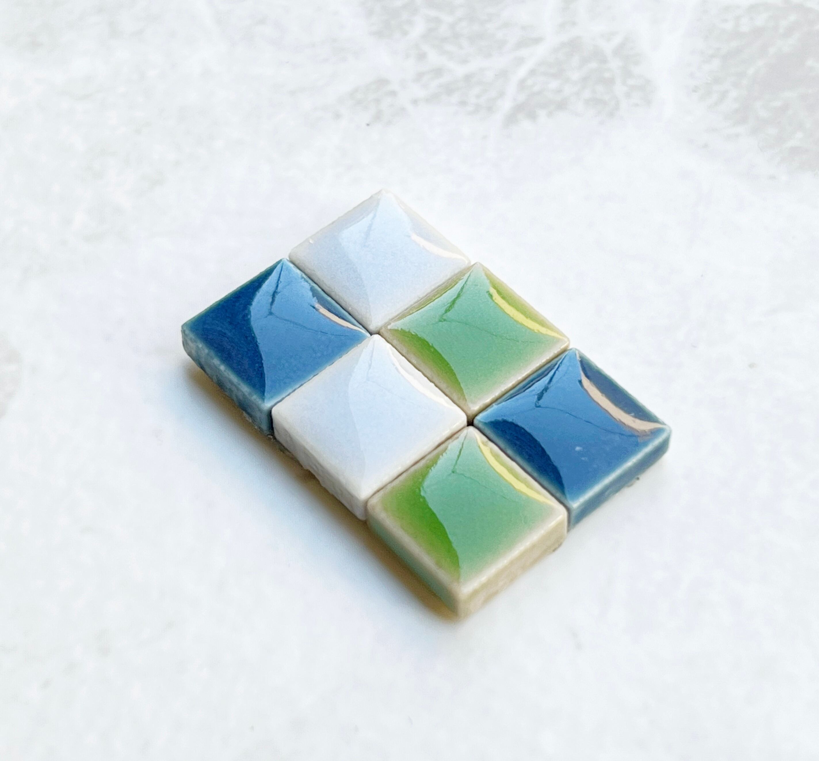 美濃焼タイル 帯留め スクエア 水色×緑×紺