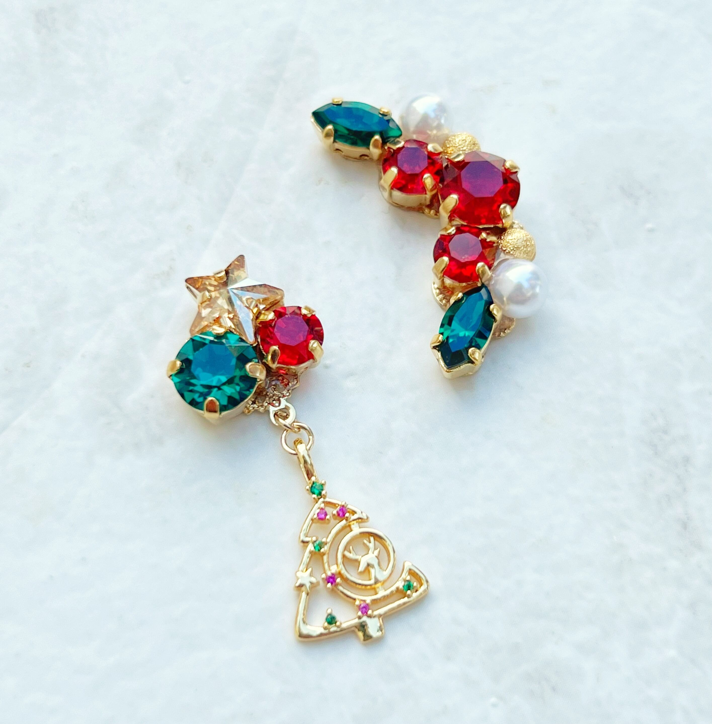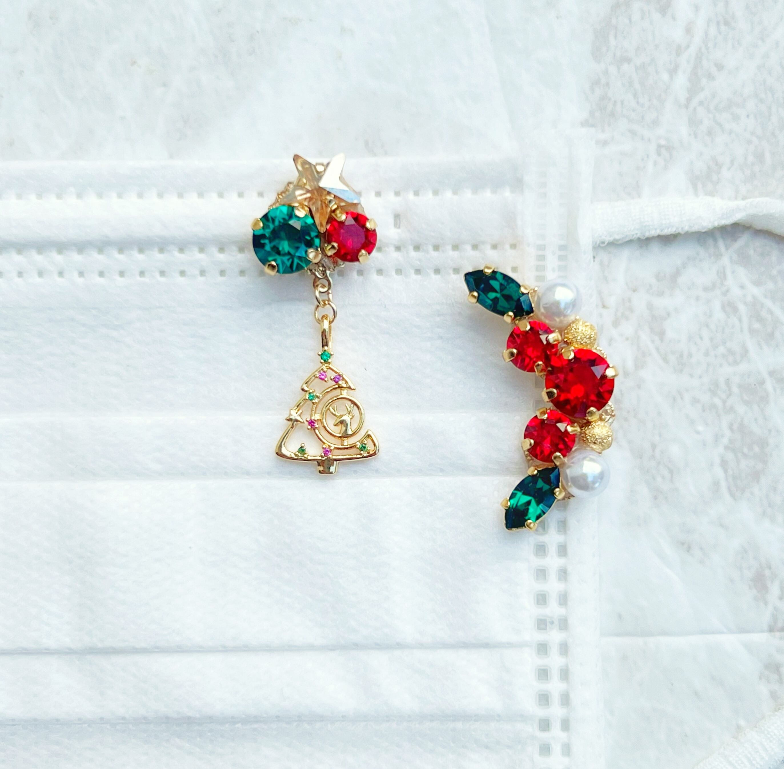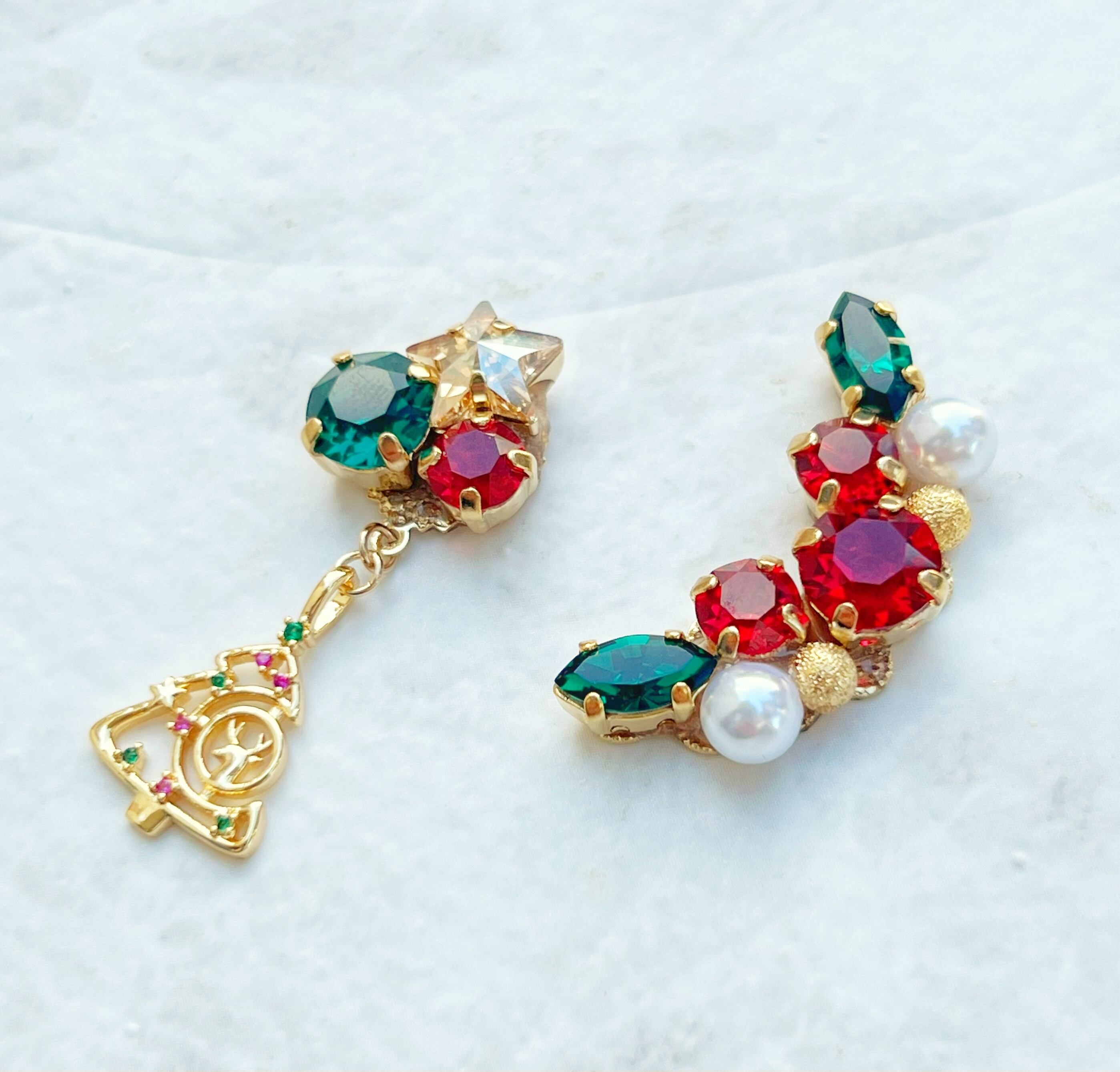 クリスマスにぴったりな、イヤーカフ&ピアス/イヤリングを作成しました✨