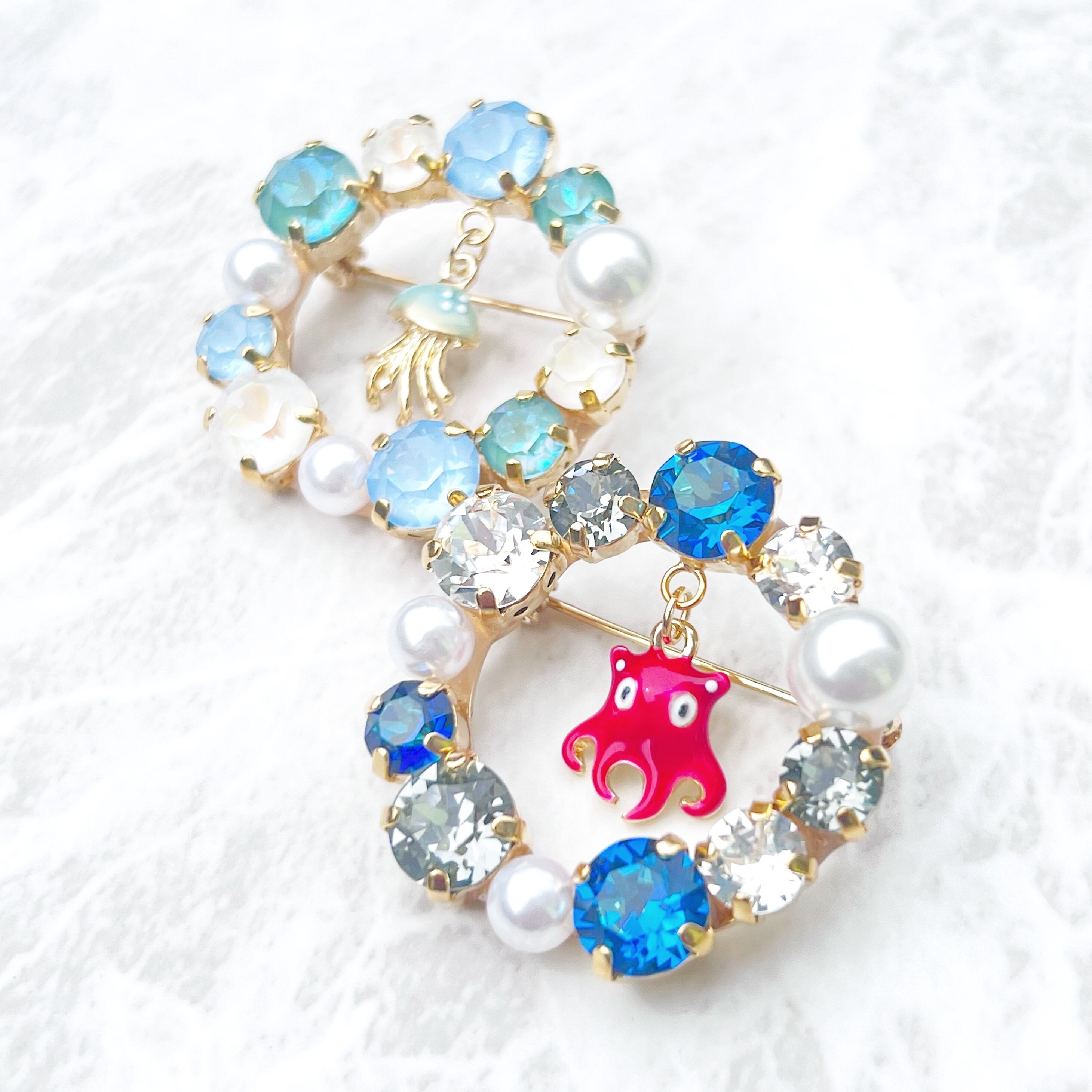 #SOLEILDESJARDINS #ソレイユドゥジャルダン #かわいい #キラキラ #アクセント #スワロフスキー #クリスタル #七五三 #成人式 #入学式 #卒業式 #お宮参り #春 #夏 #秋 #冬 #リースブローチ #かえるくん #リース #スーツ #ジャケット #結婚式 #同窓会 #二次会 #パーティー #華やか #ビジュー #水族館 #海の生き物 #ブローチ #パール #大人 #シンプル #帯留め #ストール #ストール留め #マフラー #マフラー留め #めんだこ #メンダコ