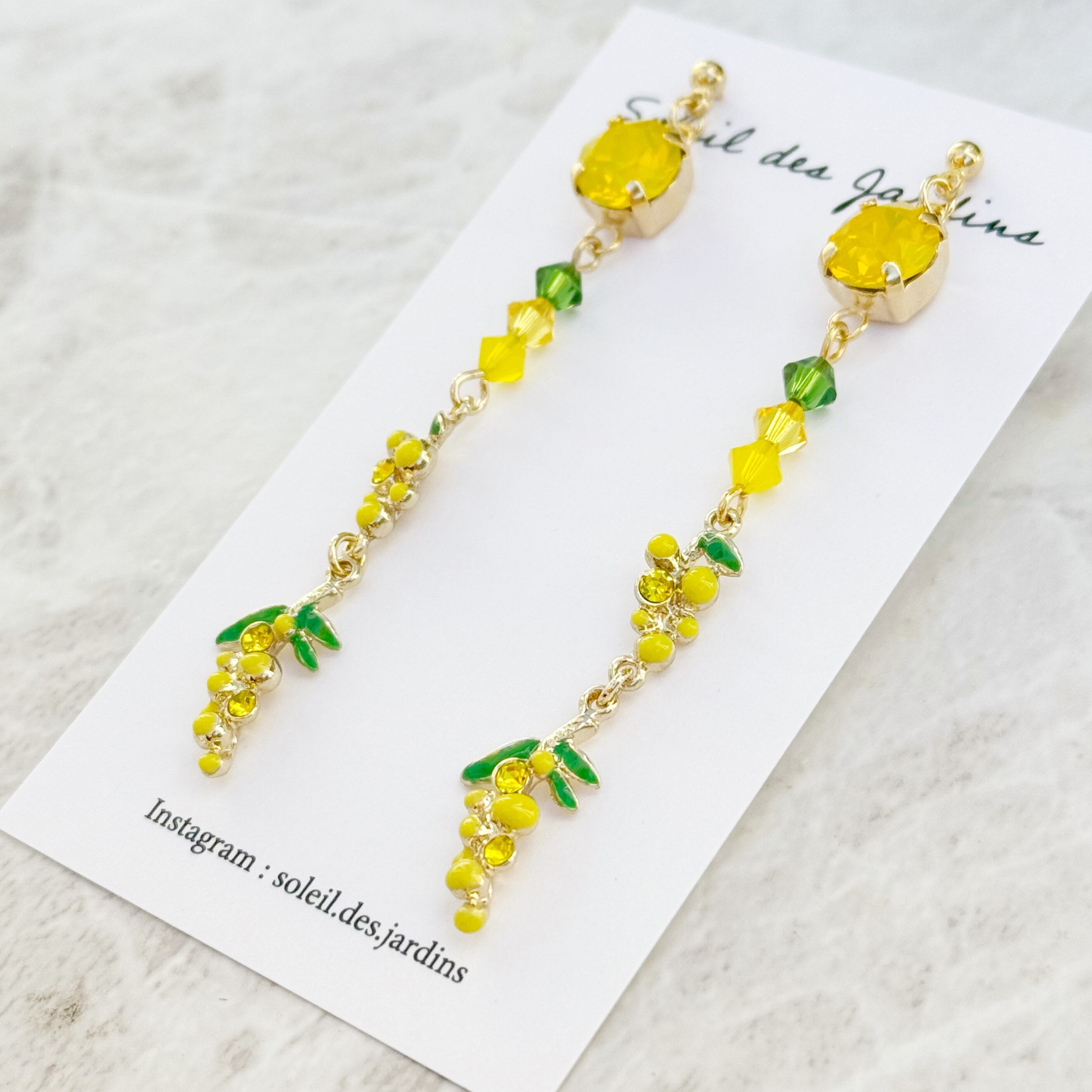 ミモザ好きにはたまらないてんこ盛りのアクセサリーです。